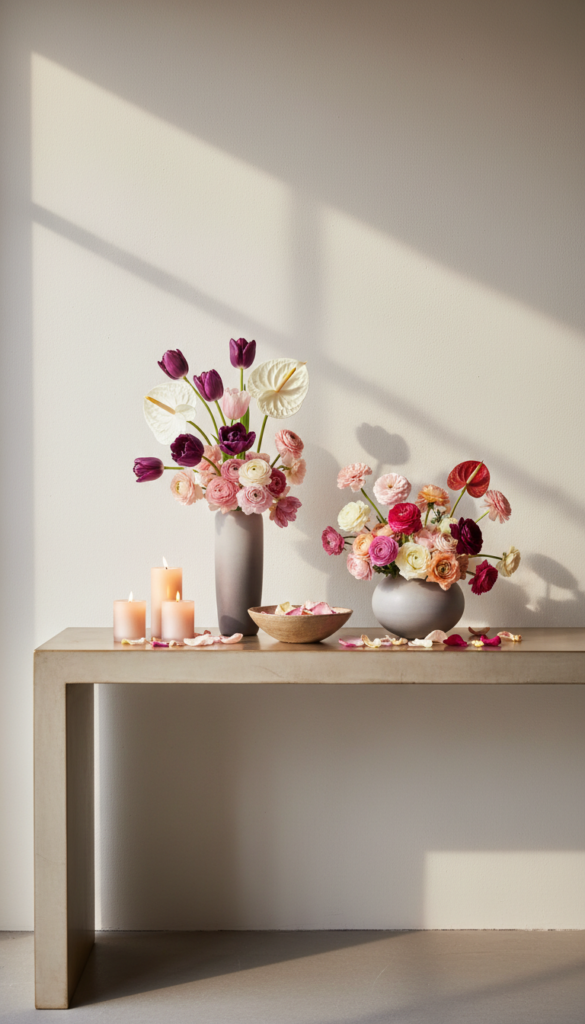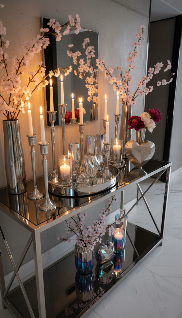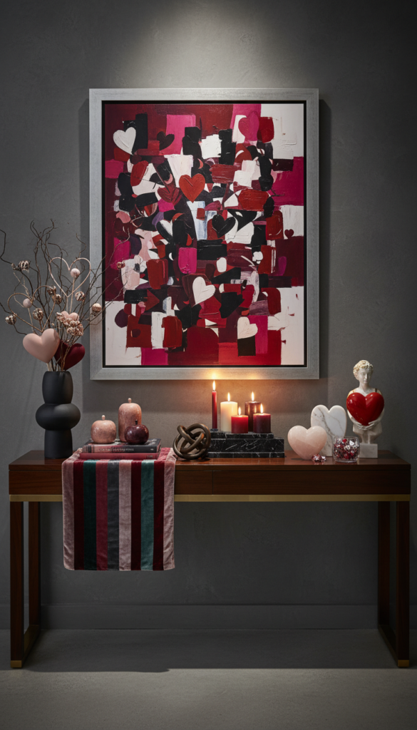 This year, let’s do Valentine’s with a chic touch: layered, editorial, romantic in a grown-up way—and still fun enough to make you smile. Below are 12 trend-driven console table ideas that lean glam, charming, and a little cheeky (but never cheesy).