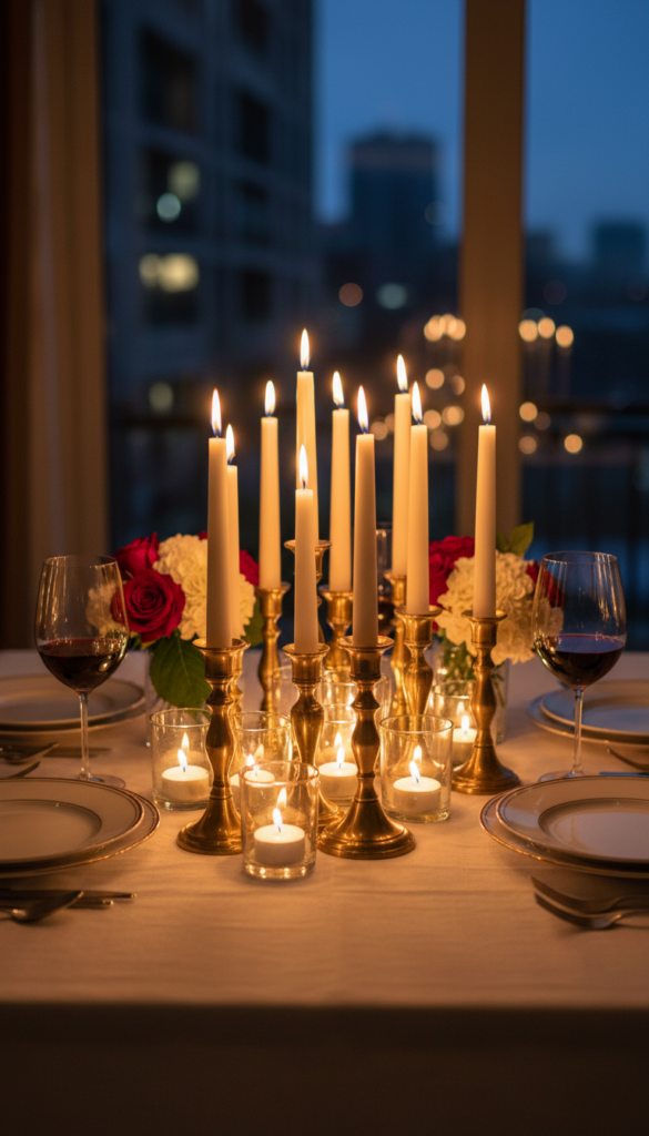 Candles set the mood, but layered lighting makes it unforgettable. Adding soft ambient light sources enhances depth and coziness.