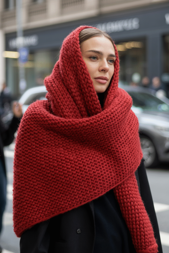 Scarves this winter are not just accessories—they’re the outfit. Extra-wide, textured scarves in bold colors or patterns are draped dramatically over shoulders. Some women even belt them to create a faux poncho effect. It’s practical warmth with an instant style upgrade. A chunky knit scarf in emerald or cherry red can turn a neutral outfit into something unforgettable.