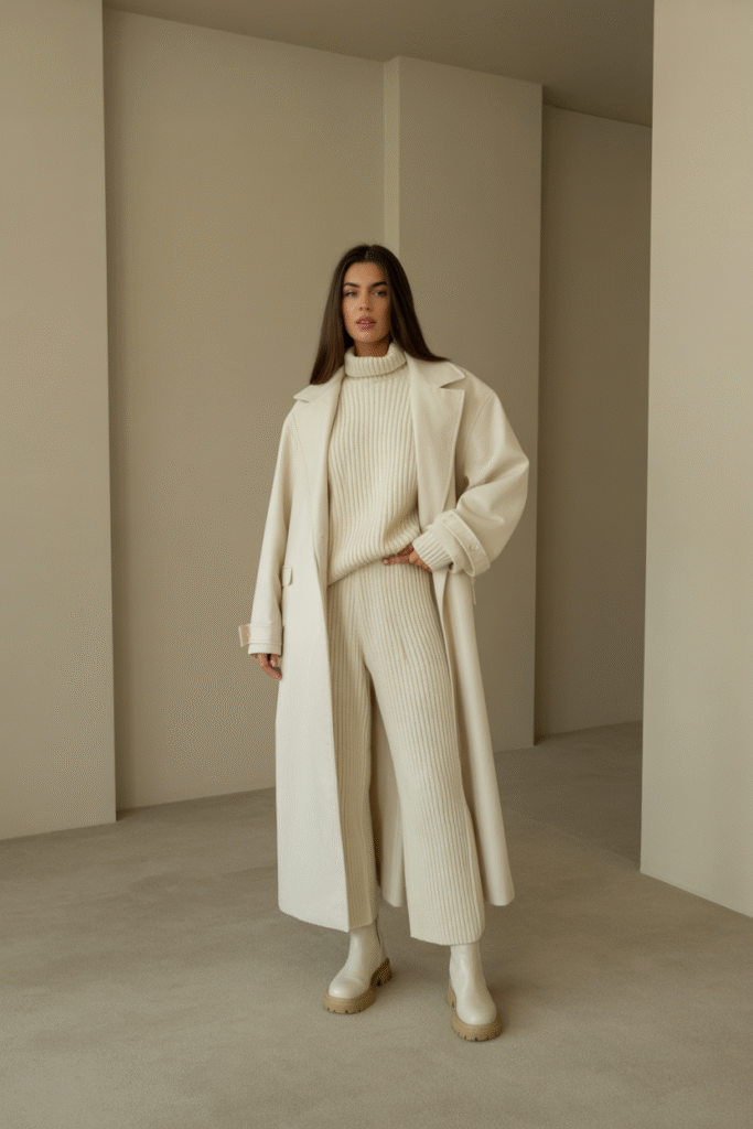 Sometimes, the simplest outfits make the strongest impact. In winter 2025, monochrome dressing in shades of cream, beige, gray, and black is everywhere. Picture an all-ivory look: a wool coat, knit pants, and leather boots. It’s minimalist, chic, and surprisingly easy to pull together. Bonus: it makes mixing and matching pieces in your wardrobe much simpler.