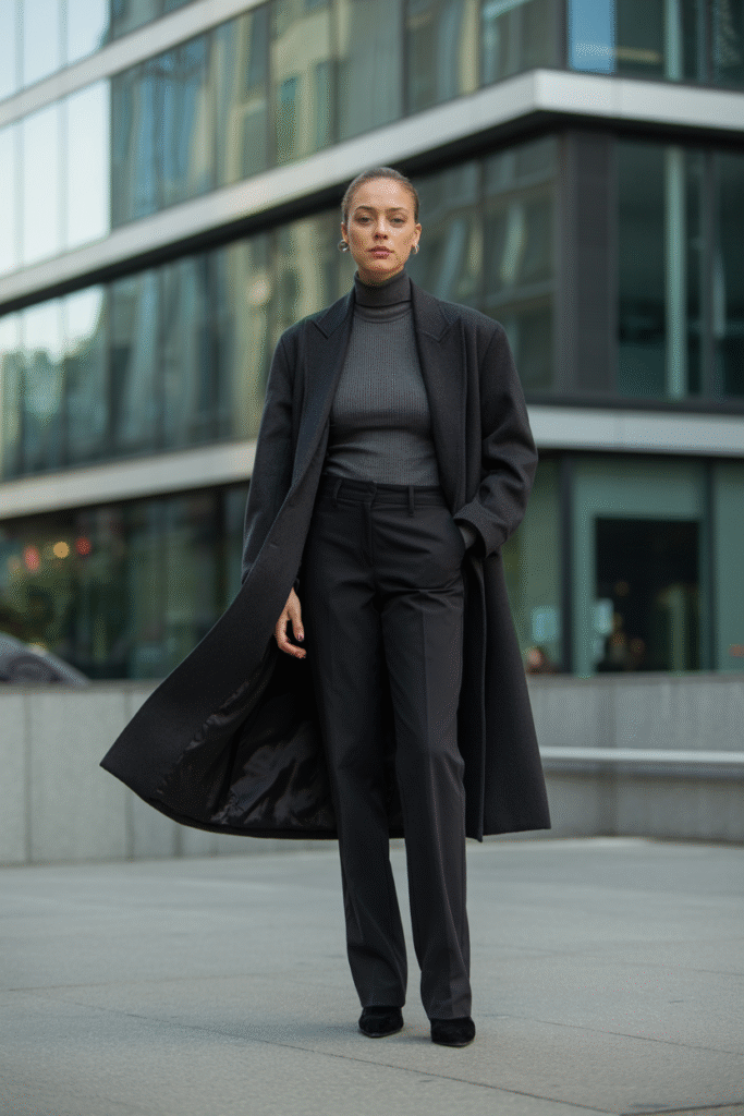The oversized wool coat isn’t new, but in 2025, it’s bigger (literally) than ever. Women are reaching for floor-grazing coats in camel, charcoal, and navy. What makes them work? Pairing these voluminous layers with sleek basics underneath—tailored trousers, turtlenecks, or even slim-fit jeans. The contrast creates balance, so you look polished, not swallowed.