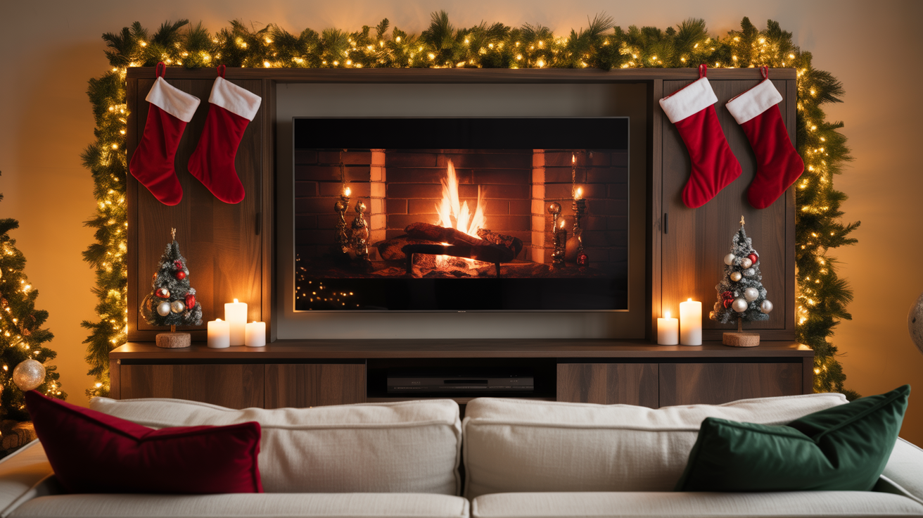 Your living room TV wall can be more than just a screen — it can be the heart of your holiday home. Whether you love bold red-and-green classics, soft neutral tones, or modern winter whites, there’s a way to make your setup sparkle with personality.