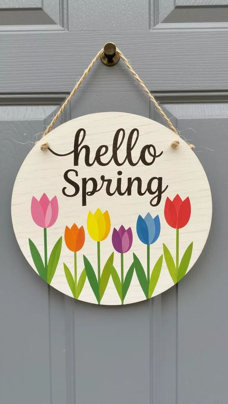 A rustic farmhouse spring sign brings a cozy, lived-in charm that feels warm and welcoming the moment someone arrives. This style blends texture, softness, and simplicity in a way that never feels overdone.