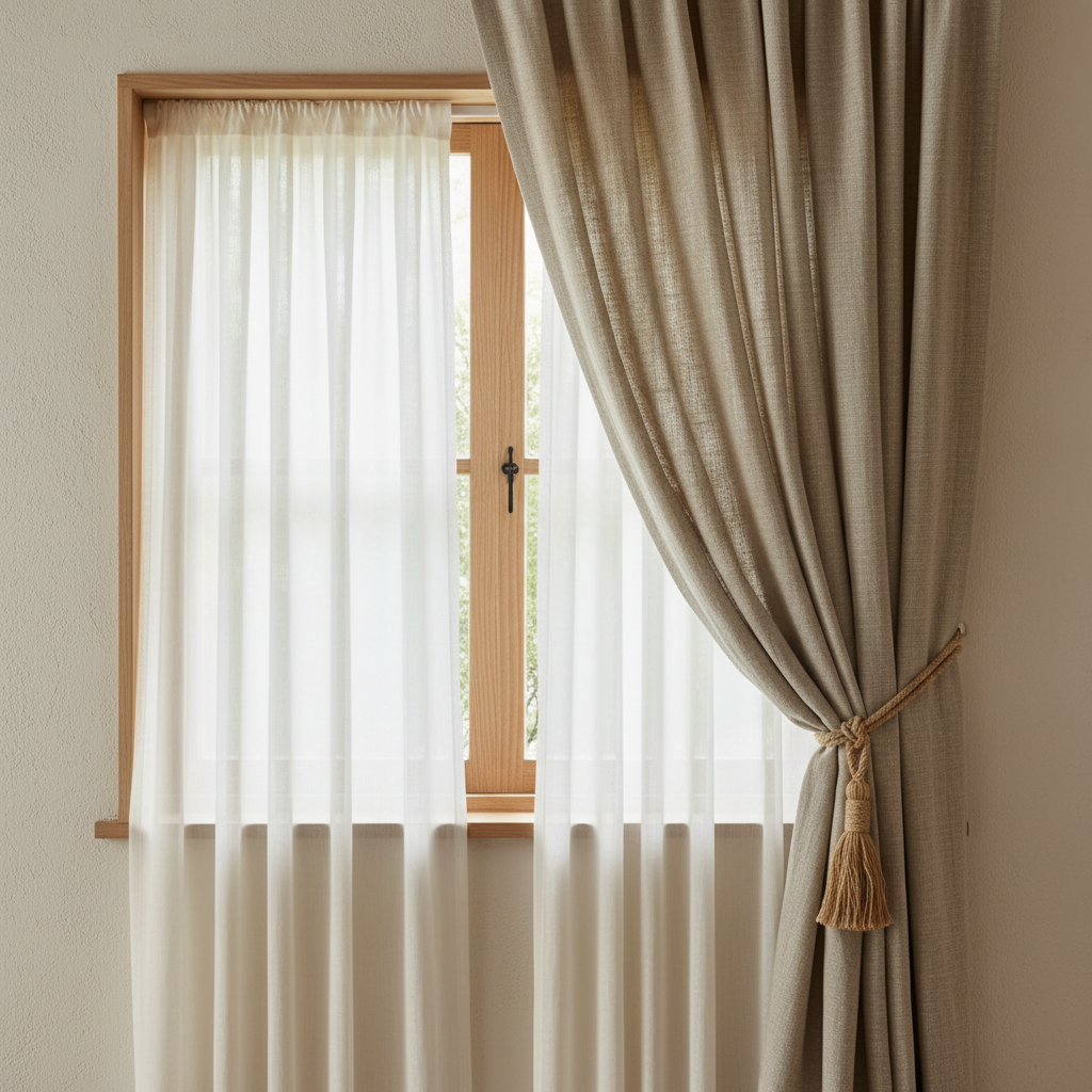 Consider pairing a sleek roller blind or Roman shade for primary light control with decorative sheer panels for added softness and texture. Install the inner layer (blind/shade) inside the frame and the outer layer (curtains) on an outside-mounted rod for a luxurious finish.