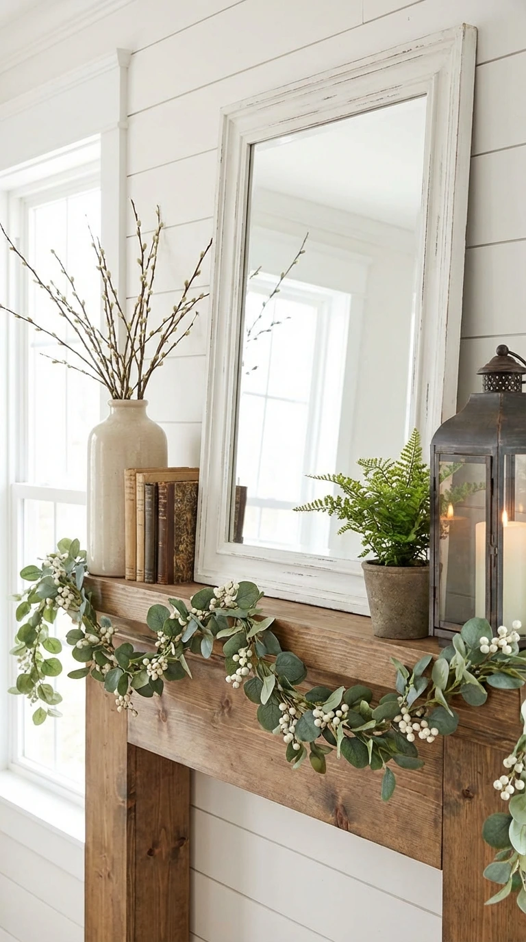 5) Farmhouse Spring Mantle Decor That Looks Styled, Not Staged