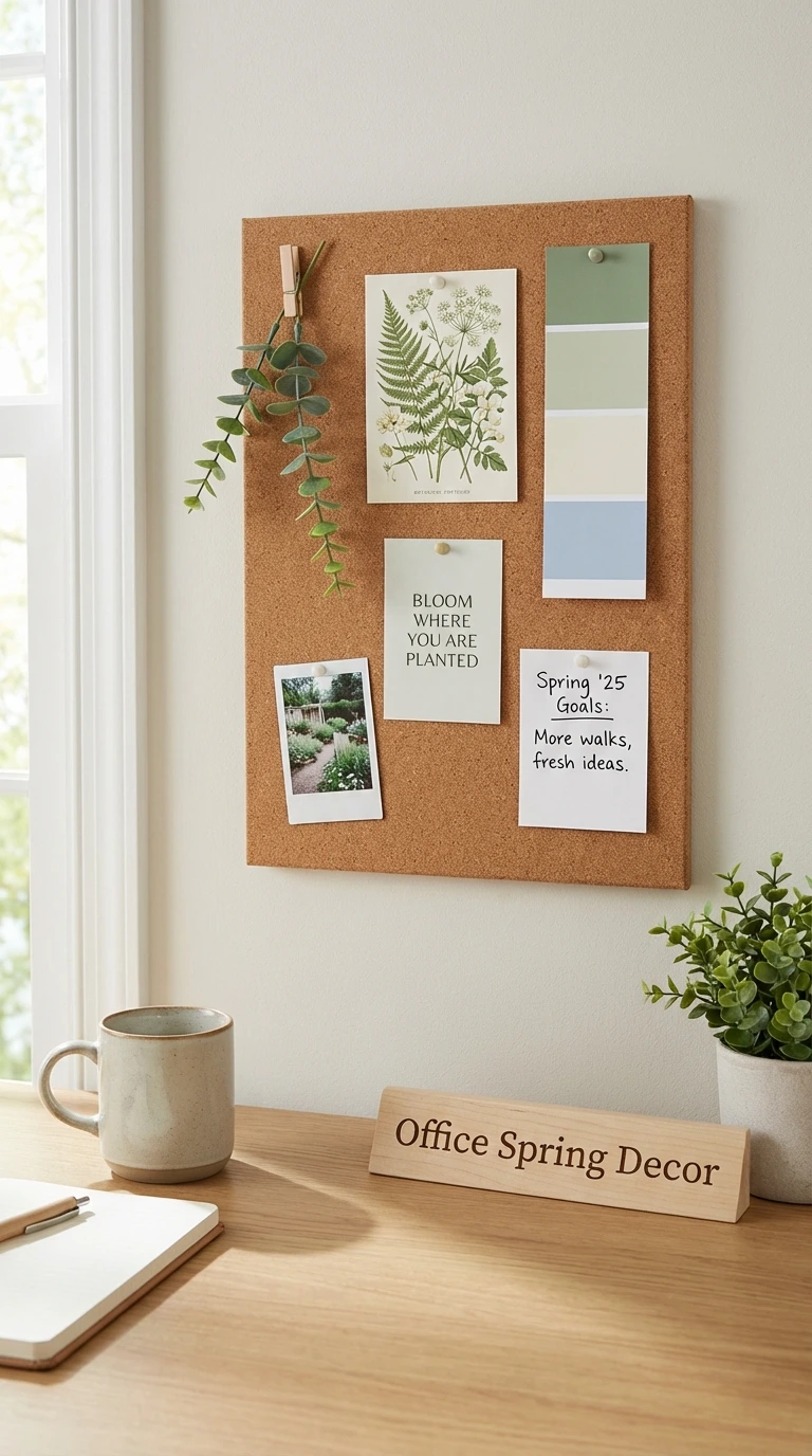 11) Office Spring Decor: A Mini Mood Wall That Makes Work Less Miserable