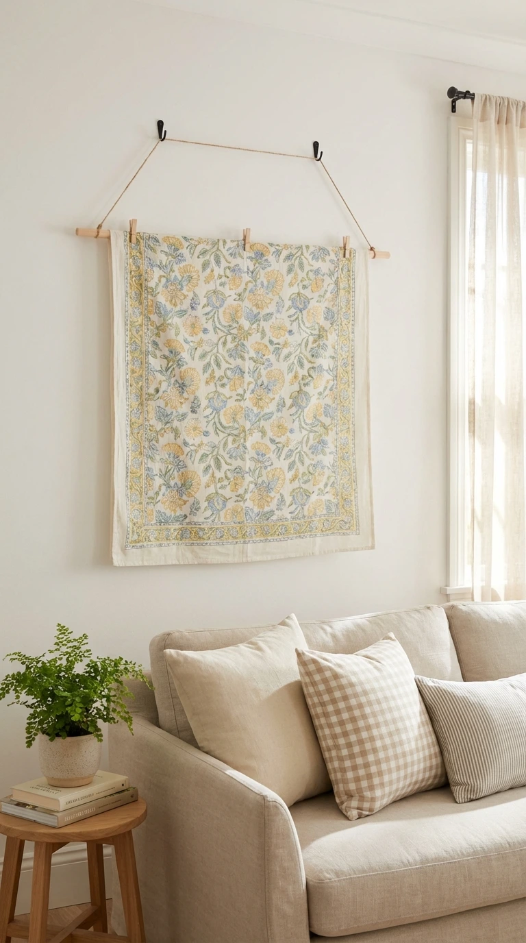 This is the underrated trick for making a room feel “new season” without buying wall art. A lightweight textile adds softness, color, and warmth—without heavy commitment.