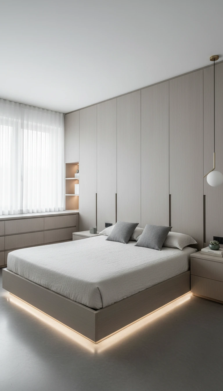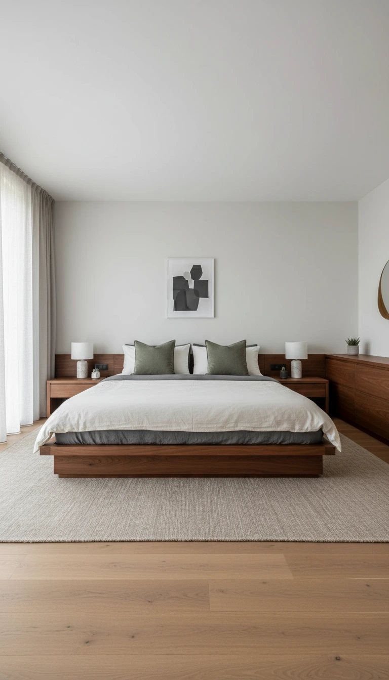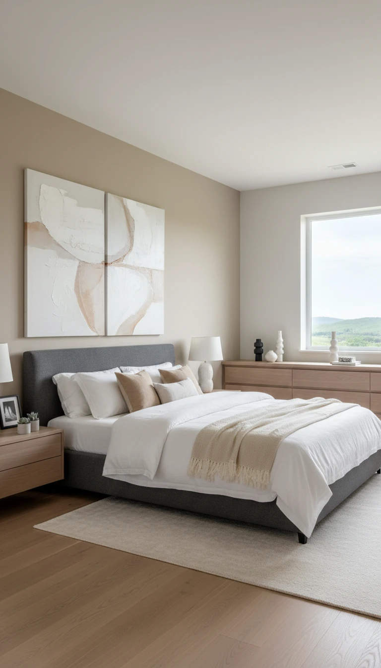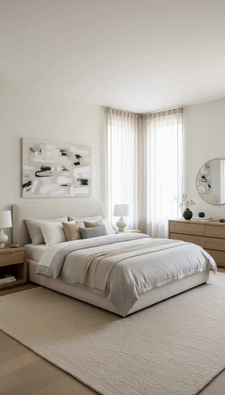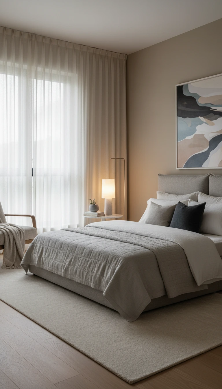 Depth replaces decoration, keeping the room calm but visually interesting.