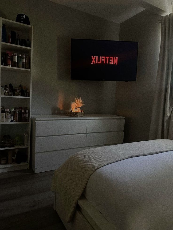 In a small bedroom, visual noise adds up fast. Mounting screens and keeping surfaces clear instantly makes the room feel calmer and more intentional. When cords, bulky furniture, and extra pieces disappear, the space feels less like a storage zone and more like a place to rest.
