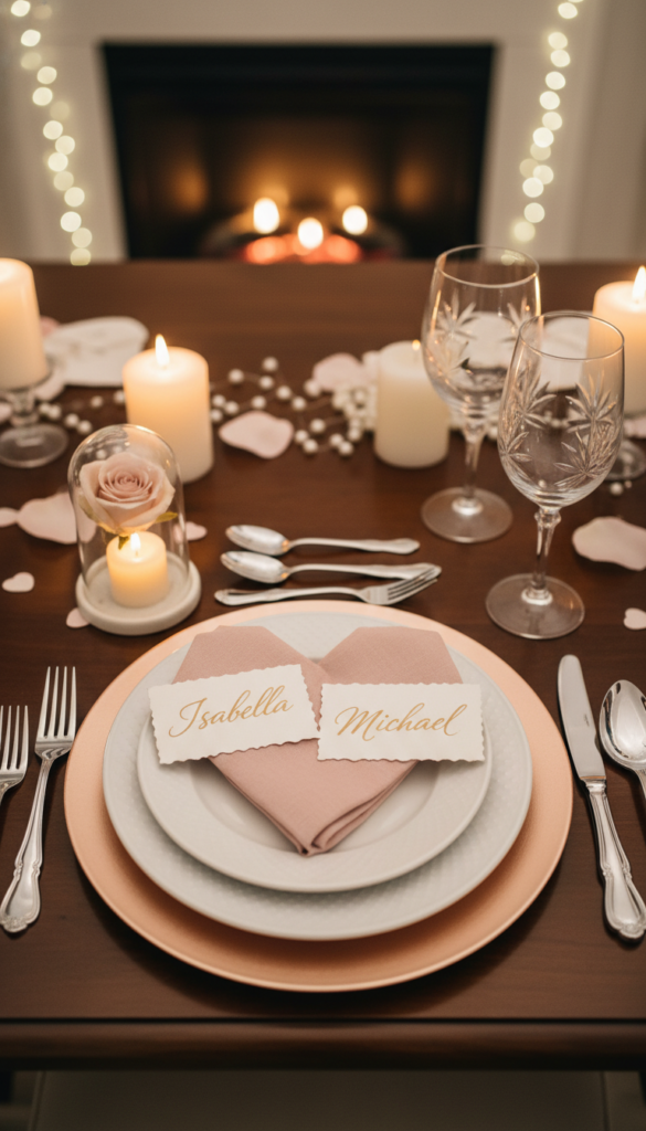 Your place settings are where romance meets intention. Thoughtful details here make guests feel genuinely special.