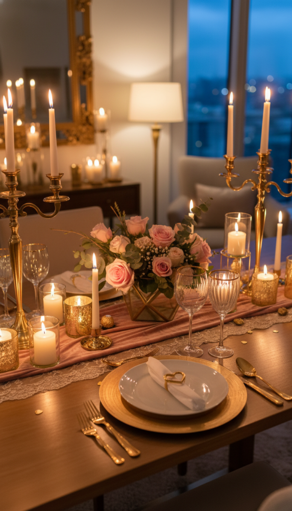 Pro tip: Arrange candles in small clusters along the table to maintain intimacy without blocking sightlines.