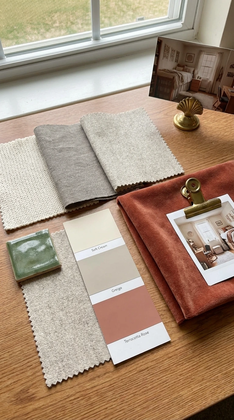 Add plants, olive accents, and warm neutrals. It reads fresh and relaxed.