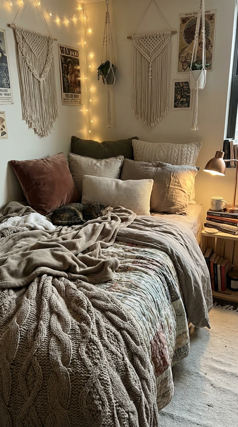 - college dorm room ideas aesthetic boho (think warm neutrals and soft patterns)