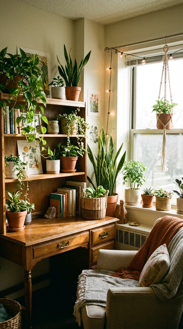 Plants add softness and color without much effort, which is perfect for dorm room ideas plant aesthetic and dorm room aesthetic ideas.