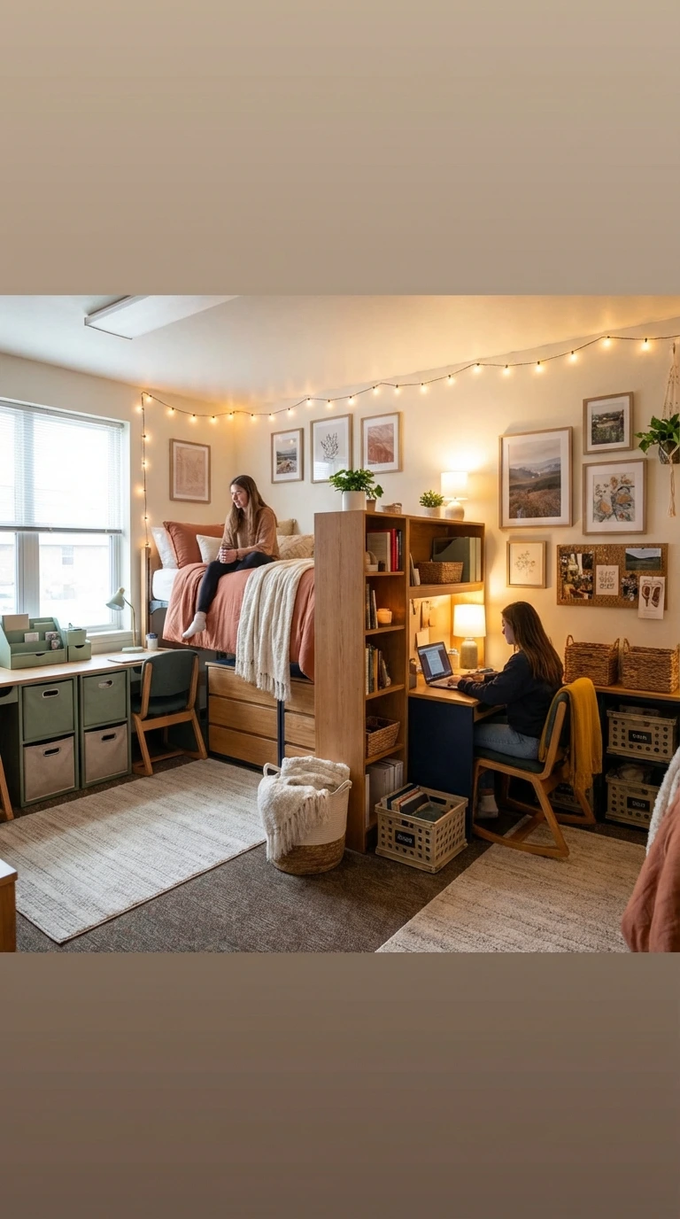 For aesthetic dorm room ideas two people, the secret is “separate but coordinated.”