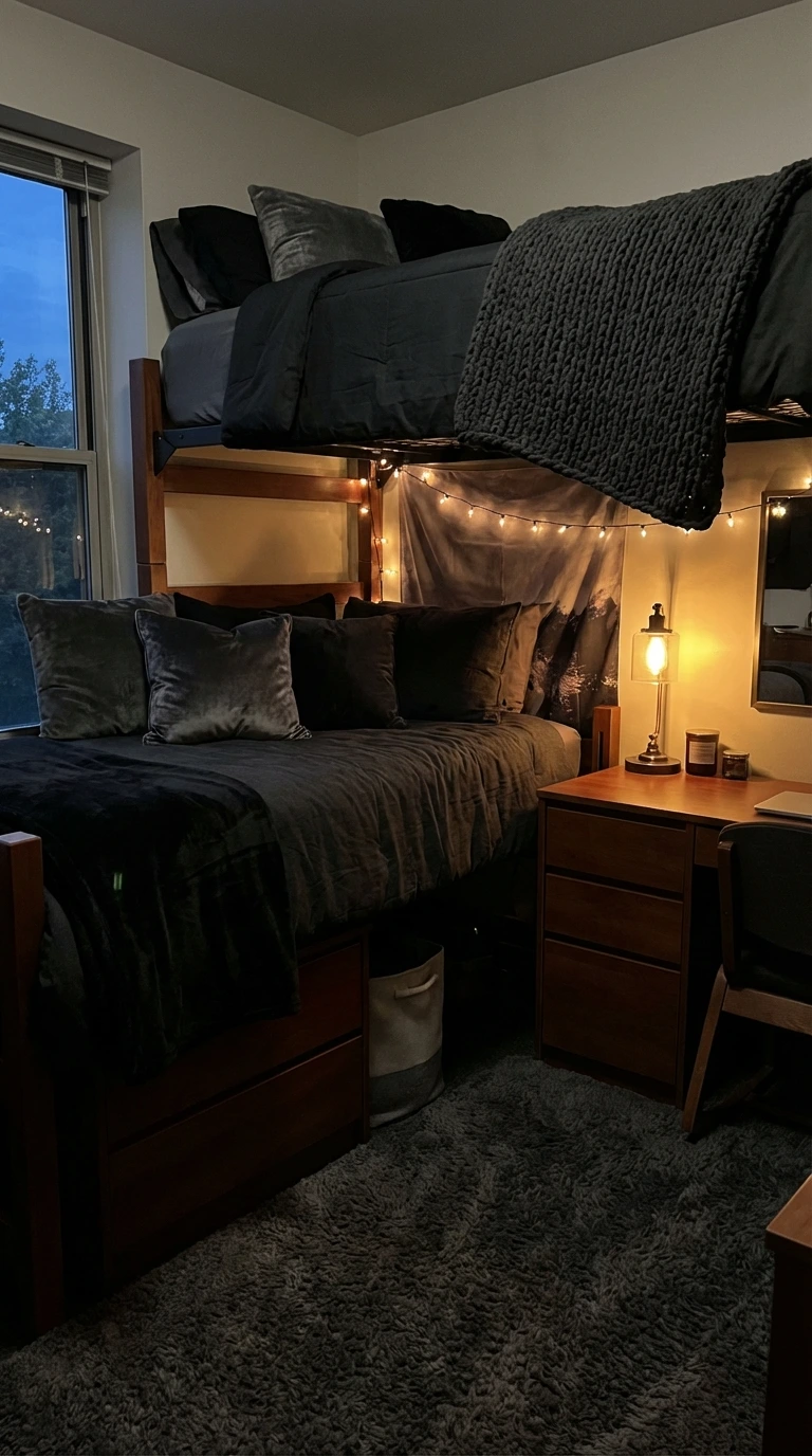 College dorm room ideas aesthetic black and dark aesthetic dorm room ideas look sleek, cozy, and grown-up when you balance them with warmth.