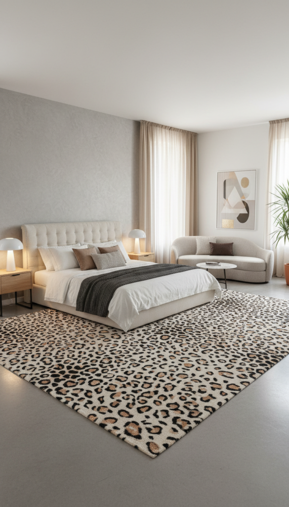 Styling: A leopard print area rug or a cow print throw blanket draped over a neutral chair is enough to nail the look without overwhelming the eye.