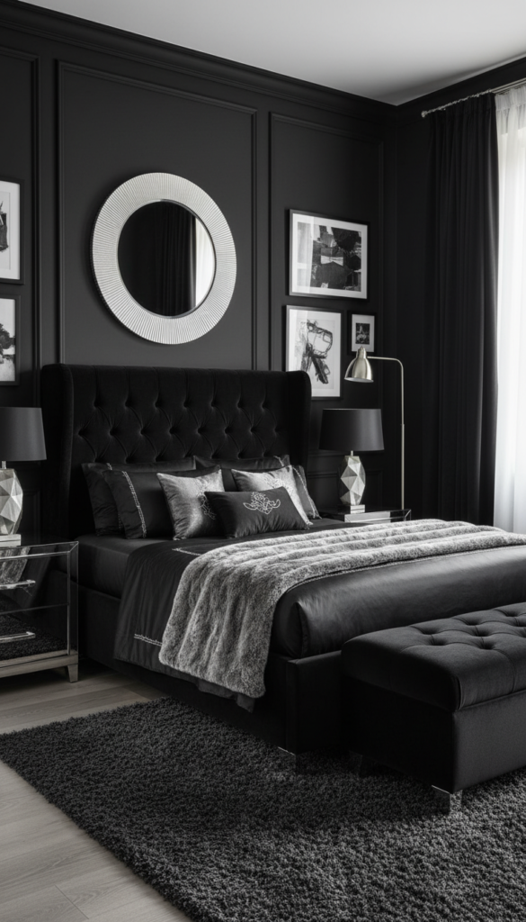 For those who prefer edge over cute, baddie room ideas aesthetic black themes are the pinnacle of sophistication. Matte black walls paired with gloss black furniture create a depth that feels expensive and mysterious.