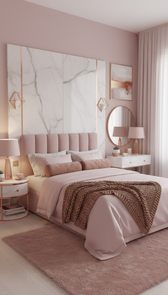 Pink room ideas aesthetic baddie styles do not have to look childish. The secret is mixing blush tones with hard textures like marble or brass. Think rose gold rather than bubblegum.