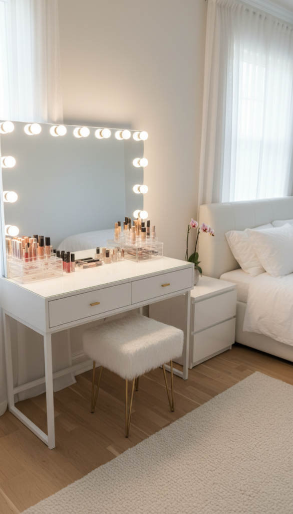 A dedicated glam station is non-negotiable. This is the command center for getting ready and taking those crucial mirror selfies.