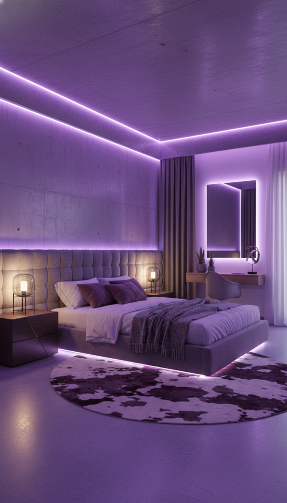 Channel royalty with baddie room ideas aesthetic purple. Deep violet or lavender lighting changes the entire atmosphere of a room instantly.