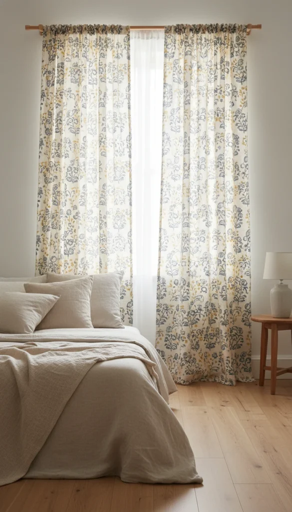 6. Soft Block-Printed Curtains for Gentle Pattern