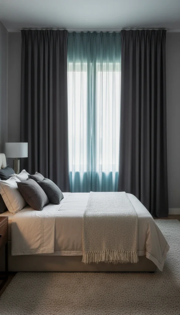 Layer them with a thin sheer panel behind. During the day, pull back the blackout layer and leave the sheer closed so you still enjoy privacy and gentle light. At night, close everything for a hotel-level sleep cave.