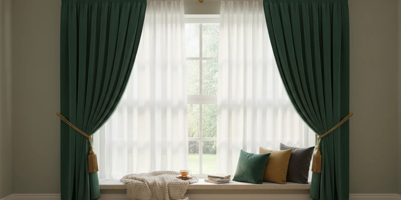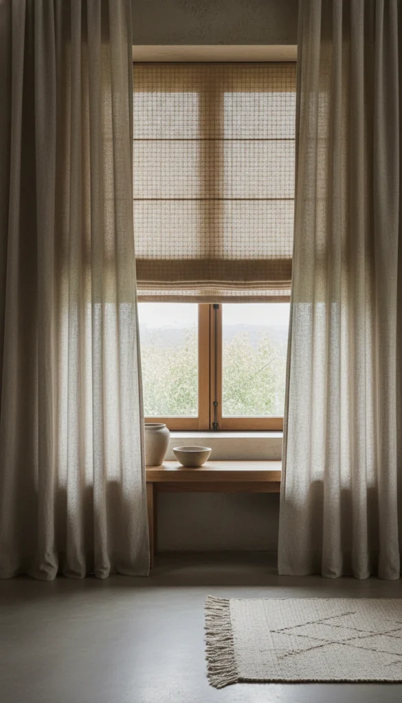 Layering curtains over blinds gives you flexible light control plus extra coziness.
