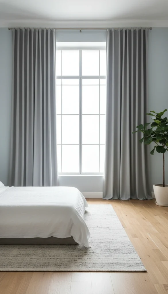Skip heavy finials or decorative rods. This style suits modern bedrooms with bold art or sculptural furniture, since the windows stay clean and quiet in the background.