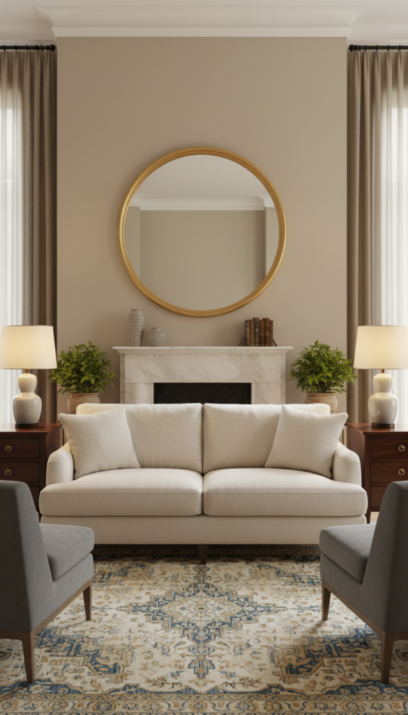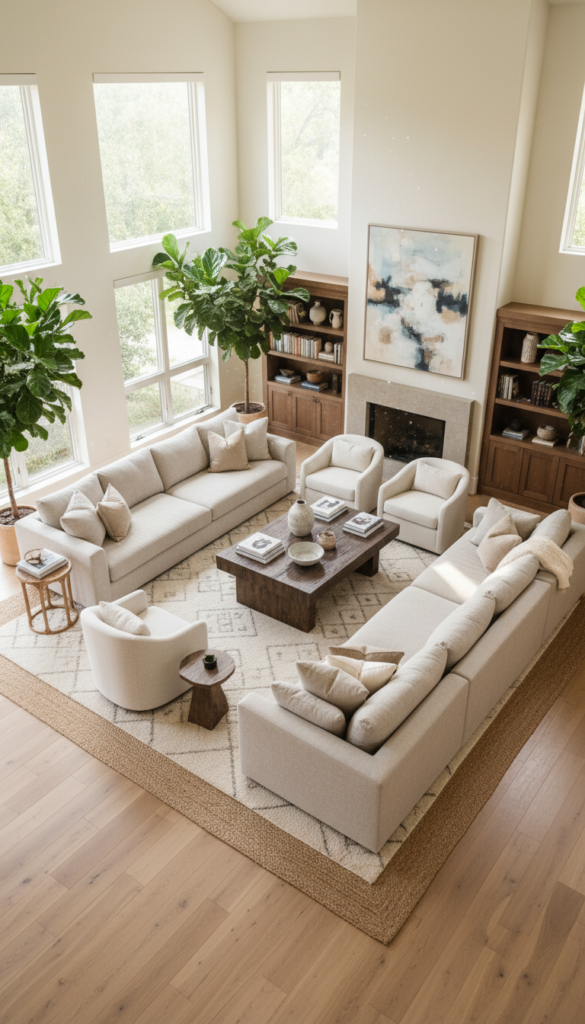 For larger rooms, consider a beige sectional living room setup or a mirrored sofa layout. It feels intentional and social.