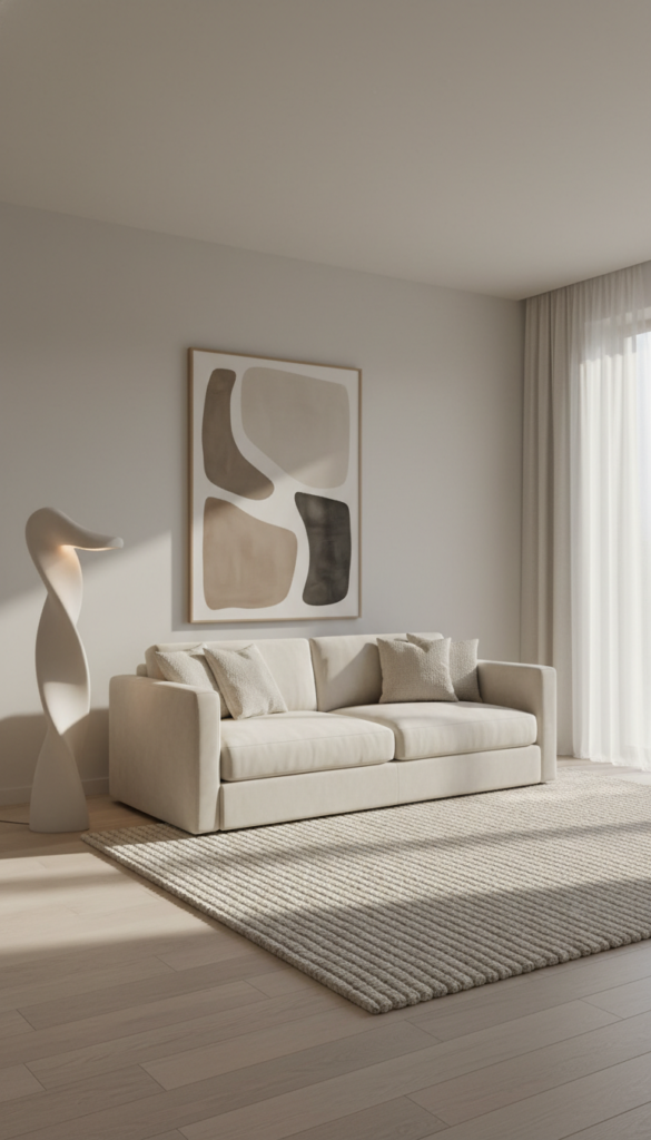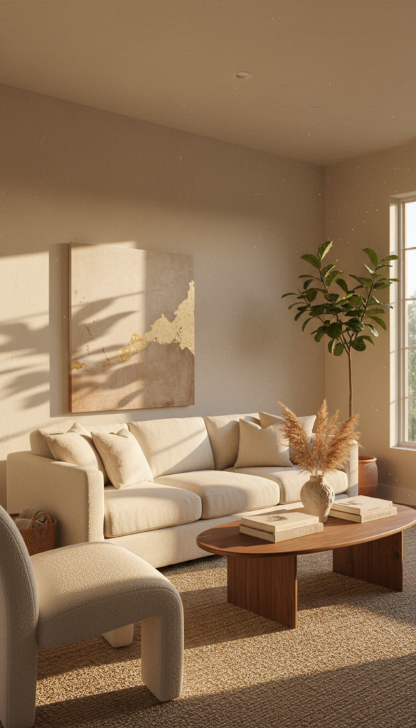 This look turns a cream sofa living room into a calm, architectural retreat—soft shapes, natural materials, zero harsh vibes.