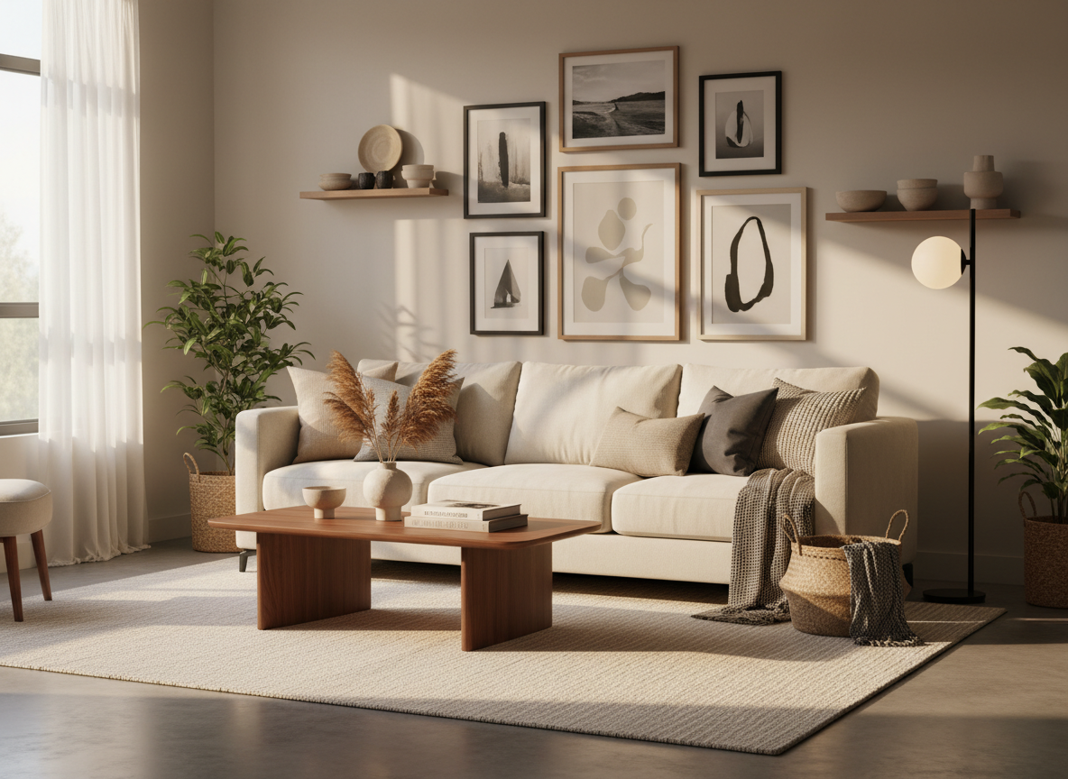 This look turns a cream sofa living room into a calm, architectural retreat—soft shapes, natural materials, zero harsh vibes.