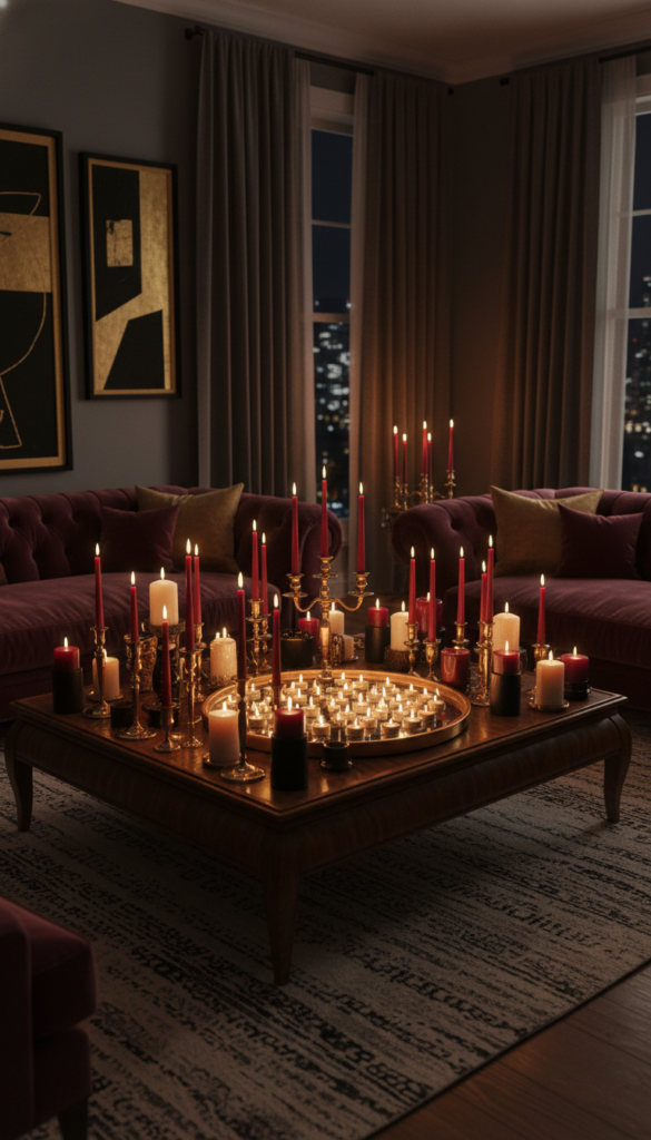 Nothing says romance like lighting that makes everyone look like they’re starring in a period drama. Candle clusters do that—without requiring a chandelier budget.