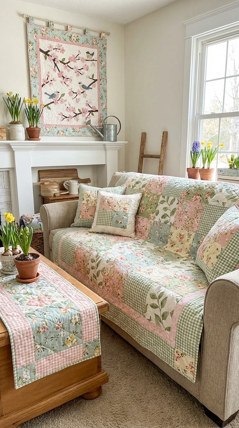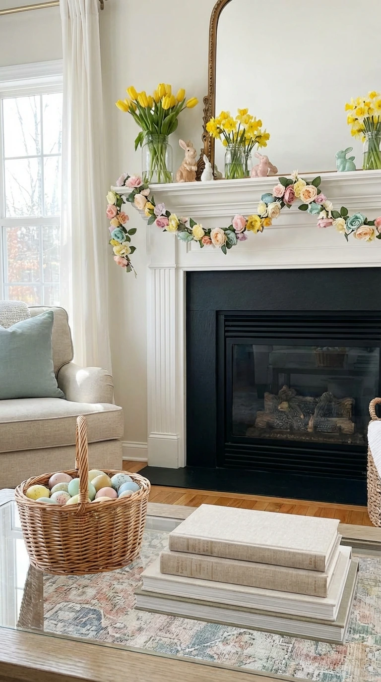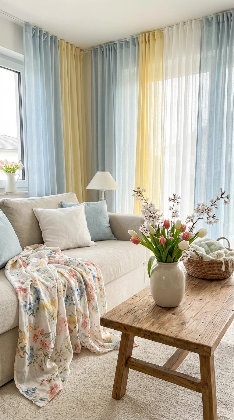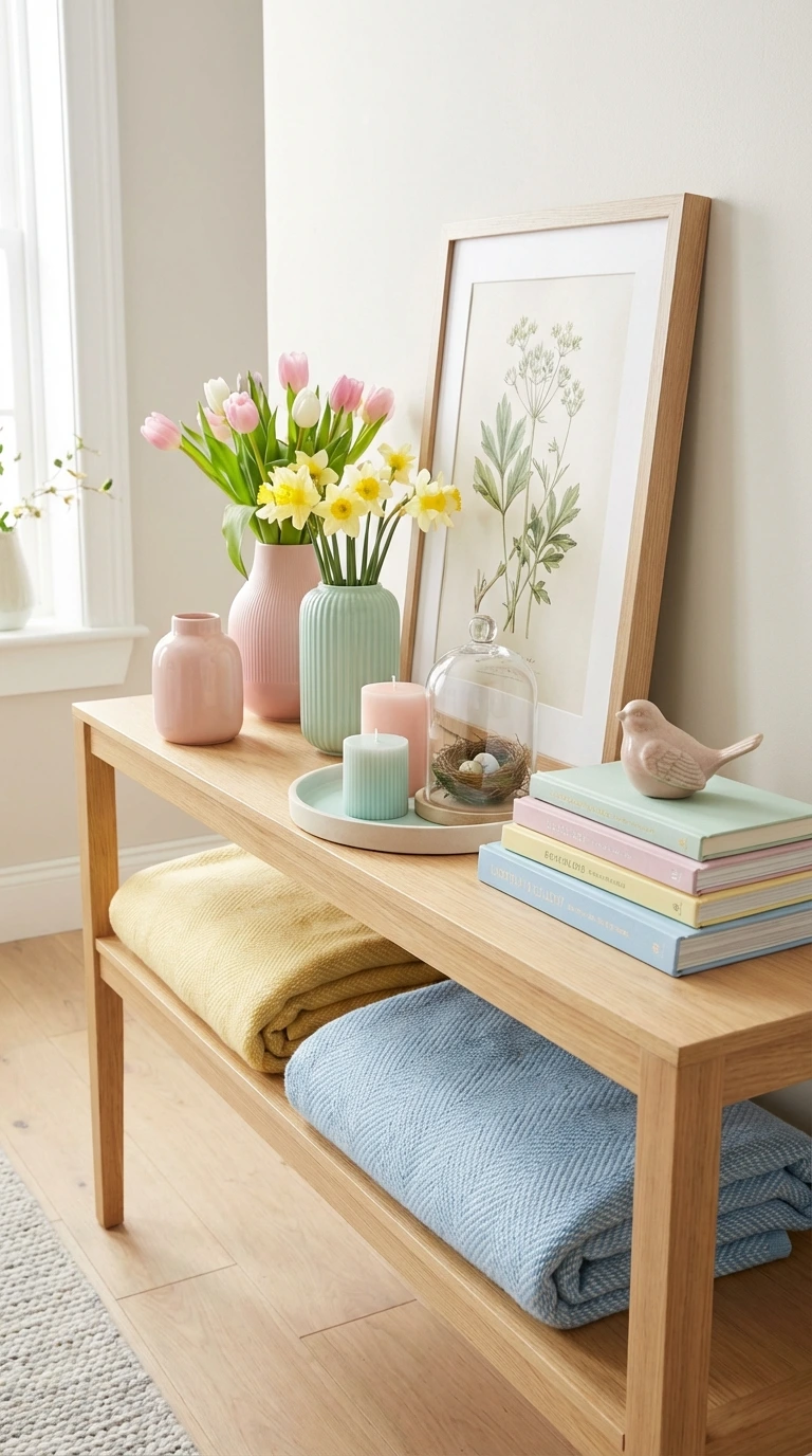 Use these colors on pillows, throws, table linens, or small décor pieces. In spring home decor ideas for living rooms, lighter colors help natural light bounce beautifully around the space.