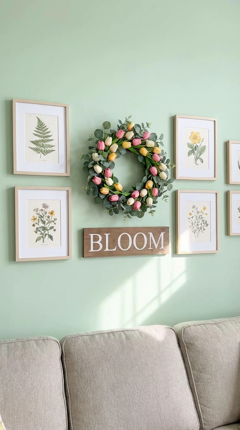Keep frames cohesive to maintain visual calm. A gallery wall with soft colors brings freshness without clutter.