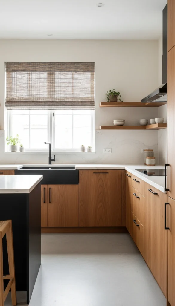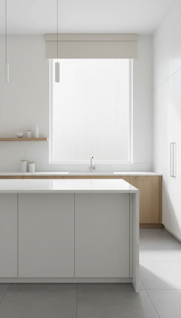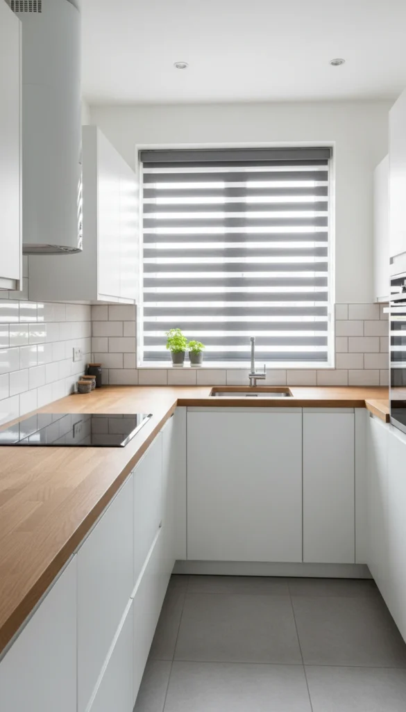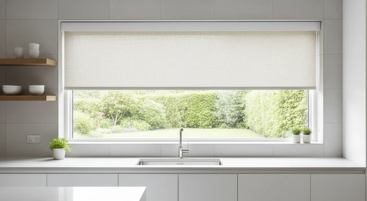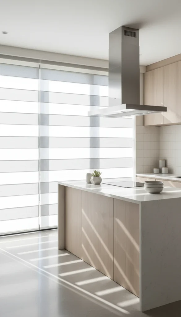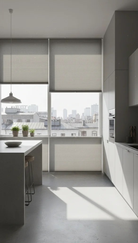 This idea works especially well in Minimalist Kitchen Window Ideas, where you want light control but almost no visible “decor” around the window.