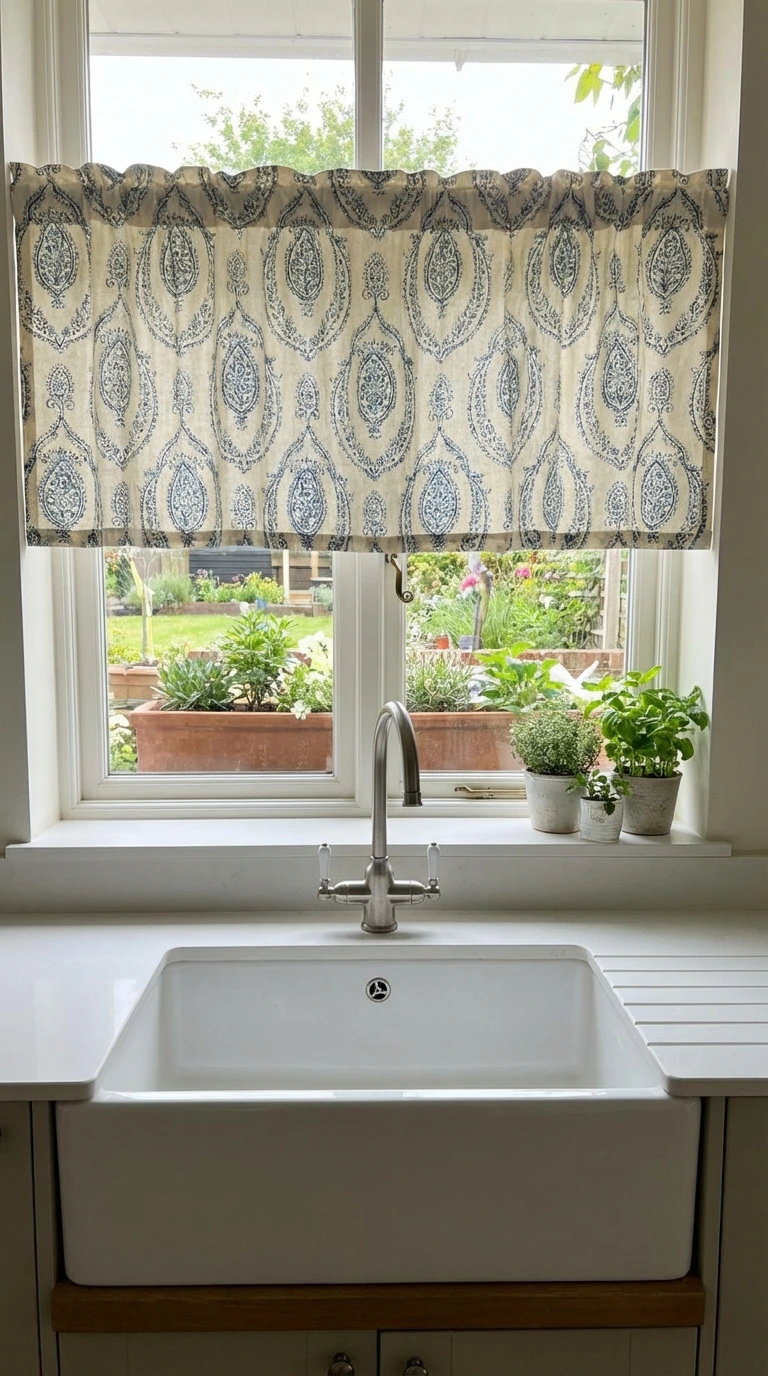 This is exactly the kind of valance that works in a kitchen without getting in the way. It adds softness and charm while still letting in plenty of light — which is non-negotiable over a sink.