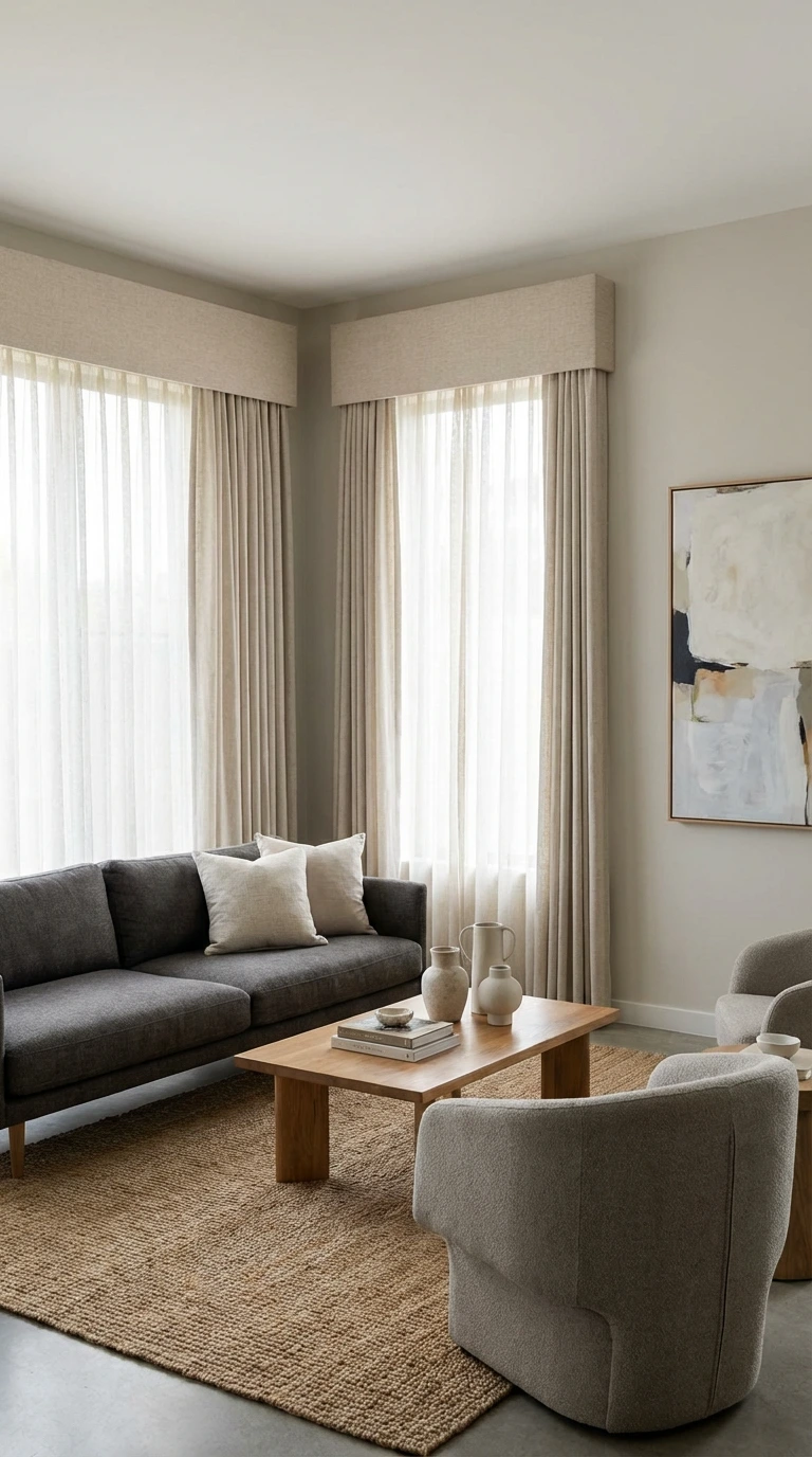 This style is ideal for large living rooms where the windows deserve presence without overpowering the space.