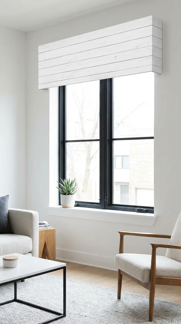 A wood valance shelf instantly makes a window feel intentional instead of forgotten. It adds warmth, structure, and just enough visual weight to ground the space without blocking light. This style works especially well when the rest of the room leans clean and modern.