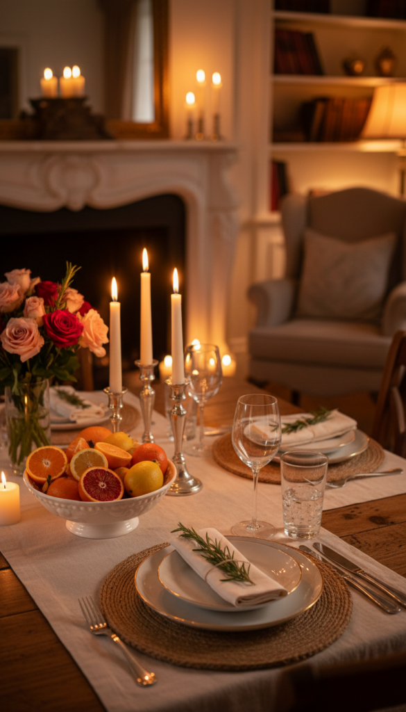 - Add rosemary sprigs to napkins or a bowl of citrus for a clean, romantic finish.