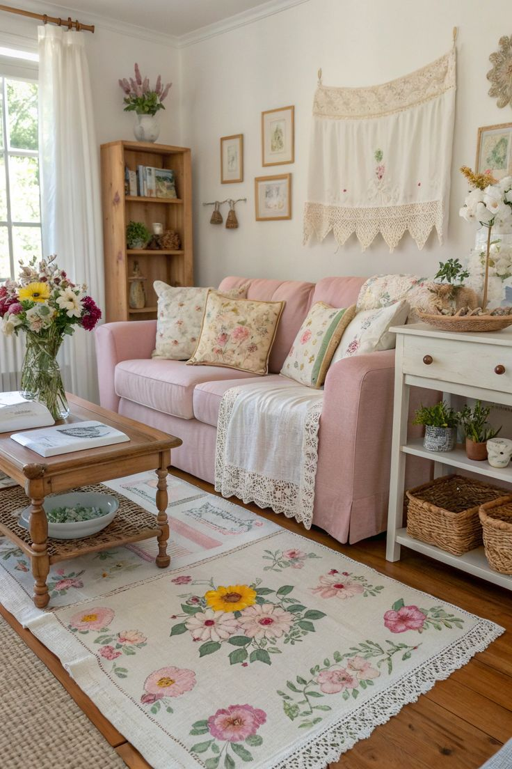 - Floral textiles instantly soften the room and add a romantic, seasonal touch without feeling overly themed.