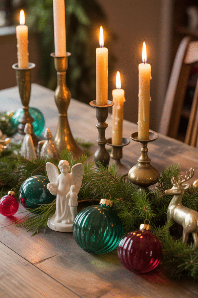Raid your thrift store for vintage glassware or ceramic figurines. Pair them with candles and greenery for a whimsical, collected-over-time vibe. Pro tip: old brass candlesticks are dirt cheap secondhand and instantly classy.