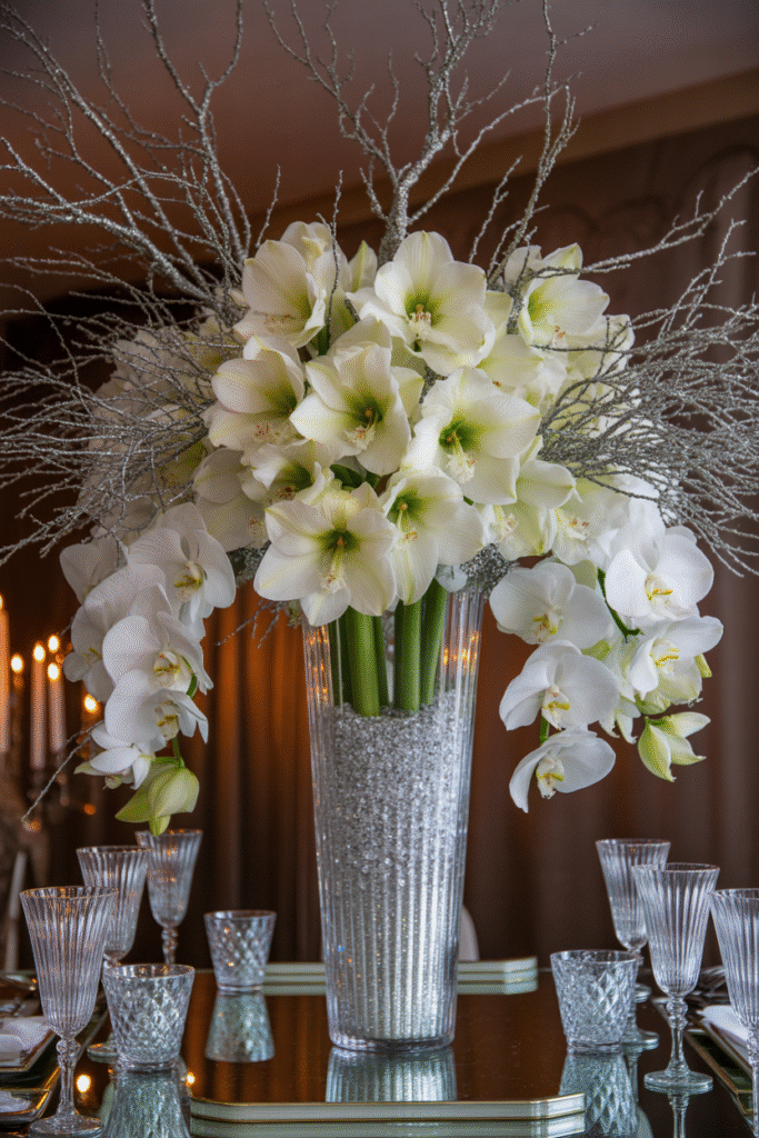 If you’re feeling extra, splurge on amaryllis or orchids. Pair with crystal vases and metallic accents. Does this cost more? Yep. Does it make you feel like you’re dining in a five-star hotel? Also yes.