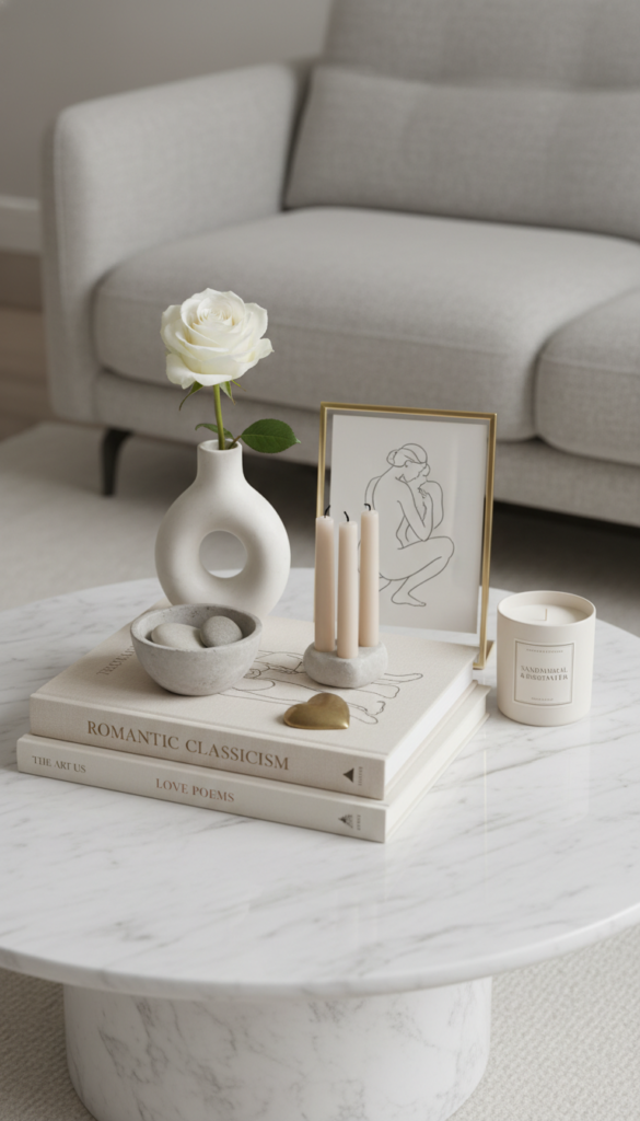 Transforming your coffee table into a romantic focal point doesn’t require cliché hearts or over-the-top kitsch — it’s all about curated layers, meaningful accents, and soft, inviting elements. Whether you prefer classic elegance, natural textures, or minimalist sophistication, these ideas help you craft a vignette that feels deeply romantic and stylishly timeless.