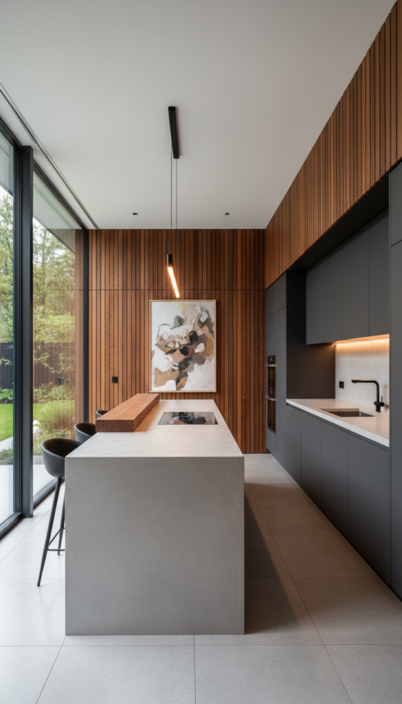 Sterile spaces are out; warmth is in. Incorporating kitchen ideas modern luxury wood elements brings nature indoors and softens sharp modern lines. Think walnut slat walls or white oak cabinetry.