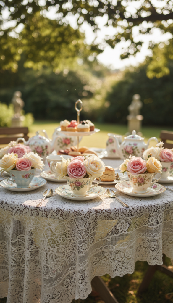 Raid the antique shop for mismatched china. Floral patterns and lace tablecloths evoke a nostalgic, Bridgerton-esque romance that is incredibly trendy right now.