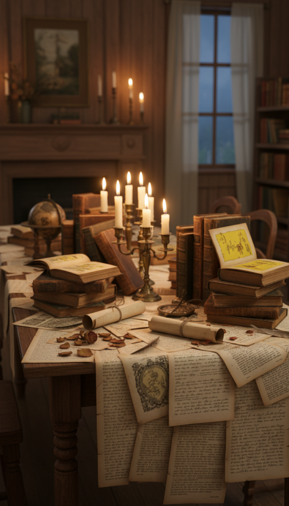 Paper is powerful. Use pages from old romance novels or sheet music as a scattered table runner. It adds a literary, intellectual layer to the romance.