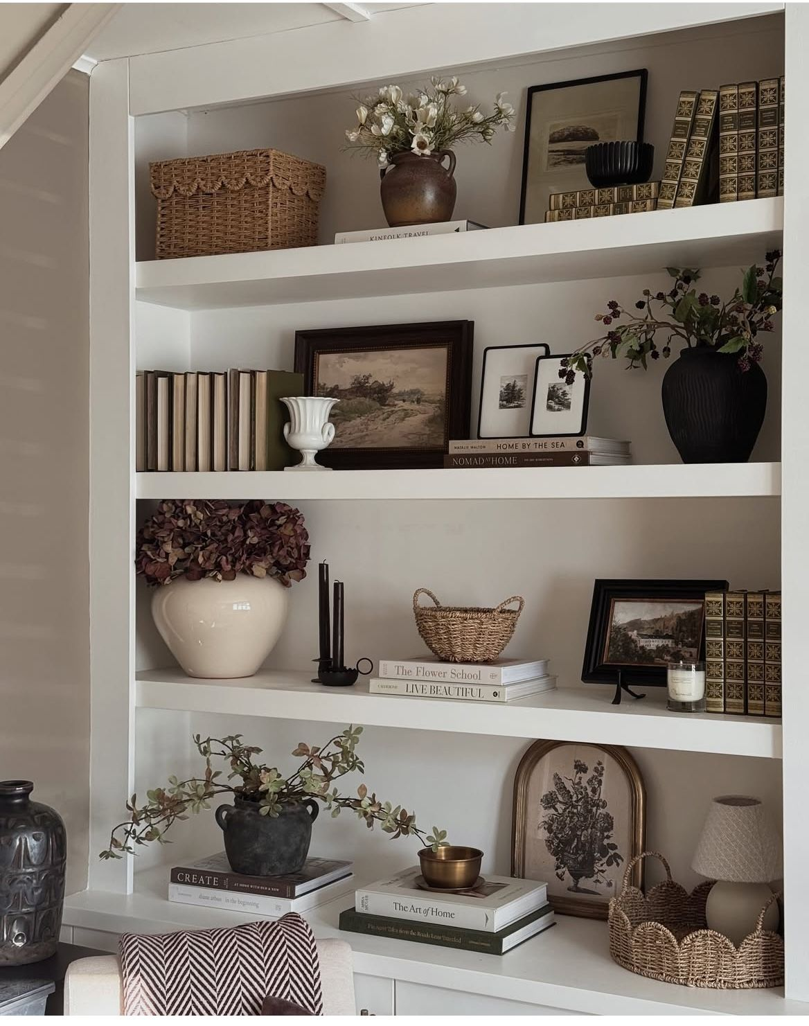 Picture ledges and floating shelves are a low-effort, high-style DIY that instantly elevates blank walls while keeping everything flexible and renter-friendly. The focus here isn’t heavy installation—it’s intentional styling that looks curated rather than cluttered.