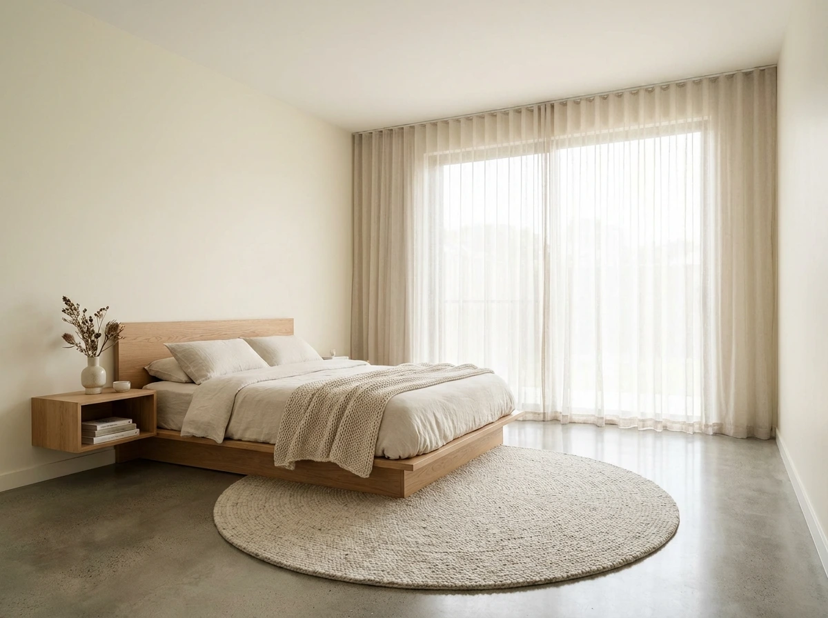 Minimalist rooms can feel cold if everything is too sleek. Natural materials bring warmth without adding clutter. Wood, linen, wool, and simple ceramics soften the space and make it feel lived-in rather than bare.