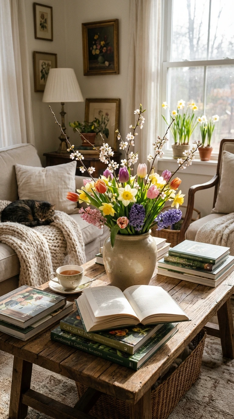 This approach keeps the living room feeling polished but comfortable — perfect for slow spring mornings or easy evenings at home.